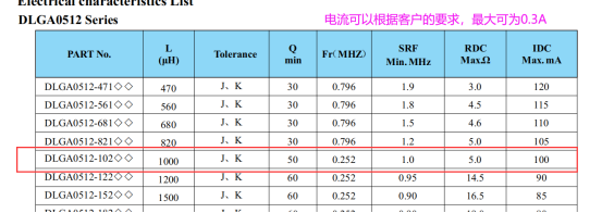 客戶(hù)原先使用的是B82144A2105J色環(huán)電感,這款電感對(duì)應(yīng)谷景的DLGA0512-102JTB,在參數(shù)上,TDK的電流只能做到0.2A,谷景的可以做到0.3A。