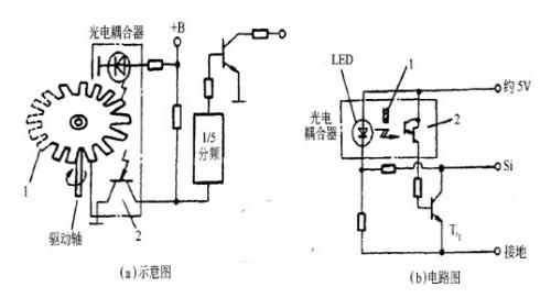圖1光電式車速傳感器1遮光板;2光電耦合器