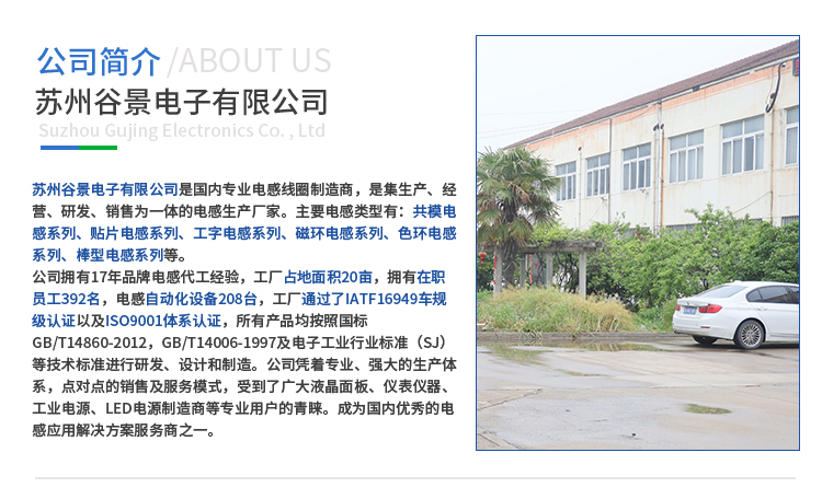 蘇州谷景電子有限公司,專業的貼片電感,塑封型繞線電感器,色環電感,工字電感,一體成型電感,高頻電感,高頻繞線電感,共模電感的電感生產廠家,公司擁有多年的代工廠經驗,在電感的定制以及加工方面有著自己獨特的見解。